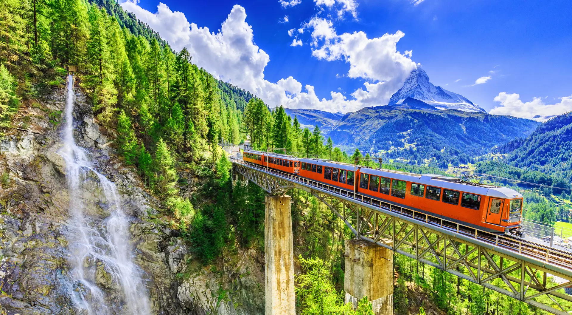 Experience the beauty of Switzerland on a train journey. Travel from Zurich to stunning Zermatt, with breathtaking scenery and charming towns along the way.