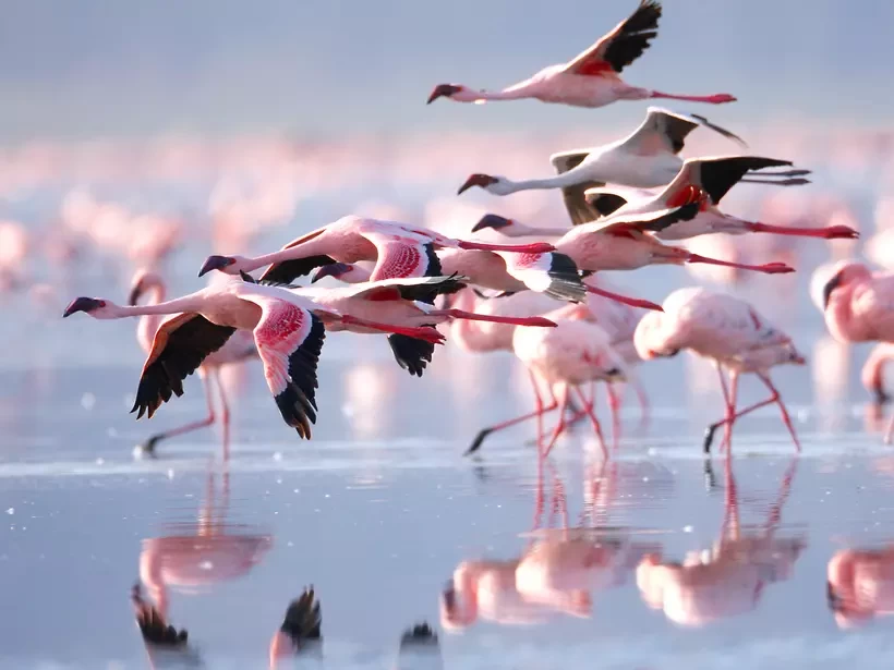After an early breakfast, depart for Lake Nakuru National Park, a picturesque haven in Kenya's Great Rift Valley. This park is famed for its seasonal flocks of flamingos that paint the lake's shoreline in shades of pink, offering one of Africa's most iconic and photogenic sights. While the lake was once home to enormous flocks of flamingos, their presence now varies with water levels, but visitors may still spot them along the shoreline. Lake Nakuru is also a designated sanctuary for endangered species, including the rare Rothschild giraffe and both black and white rhinos. Keep an eye out for elusive leopards resting in the trees. Later, enjoy a scenic lunch at the Sarova Lion Hill Game Lodge, with panoramic views of the lake and surrounding landscape. Afterward, set out on an afternoon game drive, capturing more of the park's rich wildlife diversity and dramatic terrain before returning to your lodge for dinner and overnight.