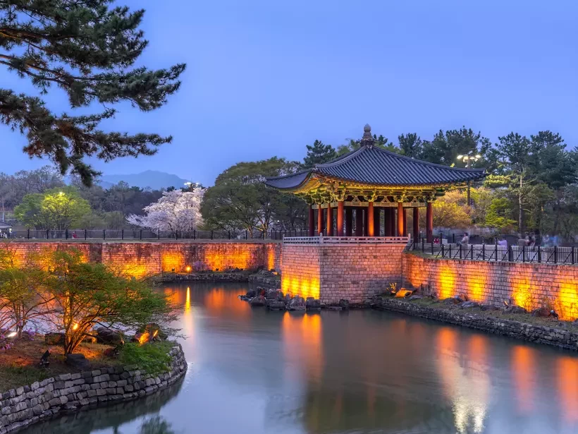 Embark on a full-day journey through Korea’s ancient capital. Meet your guide in Busan and travel by vehicle to Gyeongju. Start your tour with a visit to the stunning Bulguksa Temple, a UNESCO World Heritage site renowned for its masterful stone architecture and serene ambiance. Next, visit Gyeongju Gyochon Traditional Village, where the noble Choi Clan lived for over 12 generations. Discover traditional Korean lifestyles, explore the former site of Princess Yoseok's residence, and uncover royal history at Daereungwon Tomb Complex, home to the grand burial mounds of Silla kings and nobles. Stroll along the picturesque Hwangnidan-gil, a vibrant street filled with hanok-style buildings, artisan boutiques, and inviting cafes. Then, step into the past at Donggung Palace and Wolji Pond, a beautifully restored site that once dazzled with the splendor of Silla royalty. Conclude your cultural journey at the striking Woljeonggyo Bridge, where centuries-old architecture meets tranquil scenery. Enjoy the soft glow of twilight reflecting on Woljeongcheon Stream, the perfect end to a day steeped in history and beauty. Then return by vehicle to Busan.