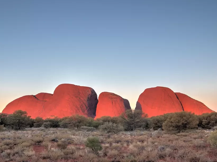 Travel to Kata Tjuta (The Olgas) where your guide will reveal the many attributes of this diverse environment. Arriving at Walpa Gorge you will walk between the mighty conglomerate domes and hear how these 36 domes that makeup Kata Tjuta have evolved over millions of years. Your guide will return you to your hotel in time for those joining Sounds of Silence or Tali Wiru dinner or Field of Lights.