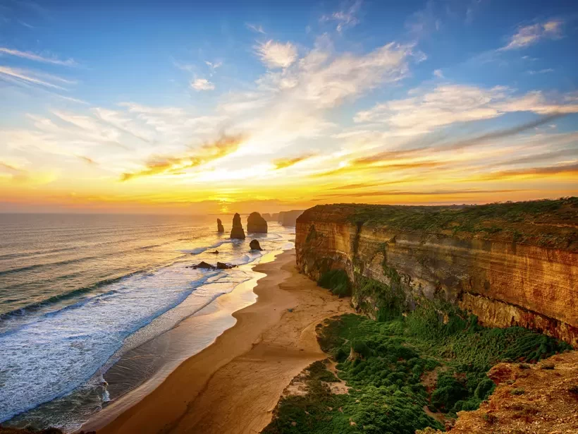 Conclude your trip in Melbourne, renowned for its arts, culture, and culinary scene. On arrival you have the rest of the day for leisure or exploration before driving southeast to the Moonlit Sanctuary Conservation Park, where you'll meet iconic Aussie wildlife like kangaroos and wallabies. South of Melbourne is Phillip Island, home of the Australian Motorcycle Grand Prix and Penguin Parade. West of Melbourne is Apollo Bay, a tranquil seaside town among rolling green hills with an excellent selection of cafes and restaurants, the Otway Ranges, the incredible Twelve Apostles, and the intimate Loch Ard Gorge.