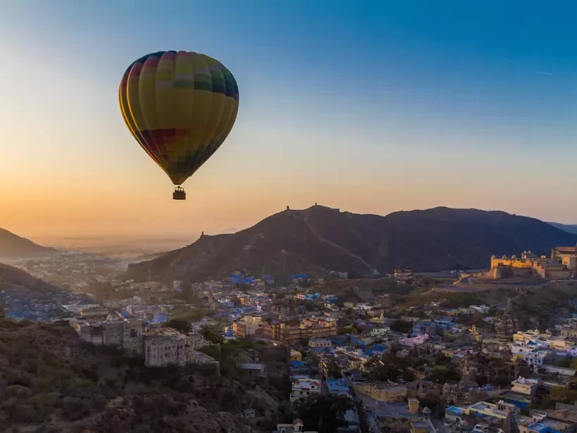 Early this morning, experience a unique view with a Balloon Safari Experience over Jaipur. A hot air balloon journey in Jaipur offers an escape from the hustle-bustle of everyday life and immerse yourself in breathtaking views. Step into the basked and before you know it you will be drifting in serene silence, admiring the vast expanse of blue above and the sprawling forts, palaces, and markets below. Once back on land, head back to your hotel for breakfast. Later this morning, begin a Jaipur city tour starting with a visit to Amber Fort. The Fort sits on top of a rugged hilltop and overlooks Lake Moata. The Fort is unique in that it's outside, an imposing and rugged defensive structure, is very different from its inside, a lavish interior influenced by both Hindu and Muslim styles. Return to the base of the fort by jeep. Continue to explore the city including a photo stop at Hawa Mahal (the Palace of Winds) as well as visit to the City Palace of Jaipur, and the Jantar Mantar Astronomical Observatory.