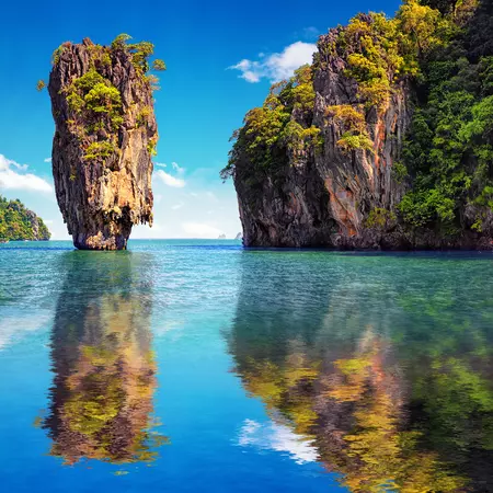 This morning, transfer to Elephant Hills Camp, catching glimpses of tropical rural life along the way. Upon arrival at the camp, enjoy a delicious Thai buffet lunch. After lunch, relax on a jungle river canoe trip down the Sok River, passing limestone mountains and cliffs covered with exotic tropical vegetation. Sometimes hornbill birds can be seen flying high overhead, as well as reptiles basking in the sun on the riverbanks. Continue to the elephant sanctuary, where you can see, touch and learn about the life of Thai elephants and about the Elephant Hills elephant conservation project. You will prepare and feed them one of their daily meals, including their dietary supplements that help with their digestion and overall well-being, then watch them bathe. Afterwards, enjoy some time at leisure in your luxury tent. Optional evening entertainment includes a movie presentation, a traditional Thai dance performance from local school children and a cooking demonstration. At 8:00pm, dinner will be served amidst the sights and sounds of the surrounding rainforest.