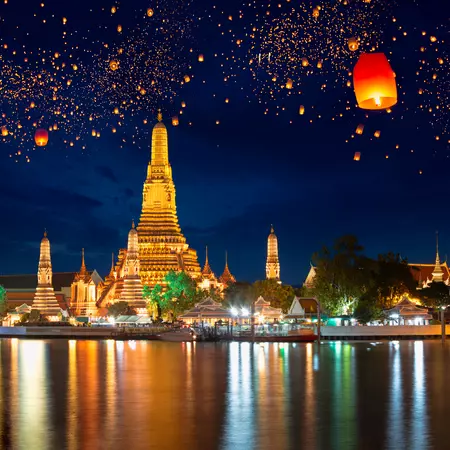 This evening, you will be met at your hotel and taken by public transport to Hua Lampong, from where it’s time to hop on Bangkok’s iconic 3-wheel, Tuk Tuk, for a night adventure ride to visit the best local eateries around the famous street zone in town. Bangkok is claimed to be the city that never stops eating. Bangkokians usually find themselves eating out at night, especially street food, which the city is also well-known for. Be taken for a ride and make various food stops at local places in which even smells will ignite one's taste buds. From the best kept-secret Guay Tiew Gai, one of the best Pad Thai in town, and Sukiyaki with seafood, all bites will truly be pleasing. All are guaranteed by Michelin Guide under a special award “The Bib Gourmand”. Also, to delight more taste buds, have some local desserts along the way. Between the bites, make some nice stomach breaks at the city’s old town landmarks. Visit Wat Suthat, one of the famous iconic sights of Bangkok for a night time perspective, and here, be wowed by its illuminated chedis while learning all about the history of the temple. Then, take in the night spot of the Giant Swing right in front of the temple. The night comes to a perfect close as the tuk tuk makes its final stop at Sky View 360, Grand China Hotel. Head up to the revolving rooftop and sip on a chilled Thai beer or your favorite non-alcoholic drink while the 360-degree panorama slowly reveals Bangkok’s dazzling skyline. Enjoy the sparkling city lights, the lively Chinatown below, and the unforgettable view that makes this hidden gem one of the city’s most magical night spots. After the tour finishes, you will be dropped off at your hotel by tuk tuk.