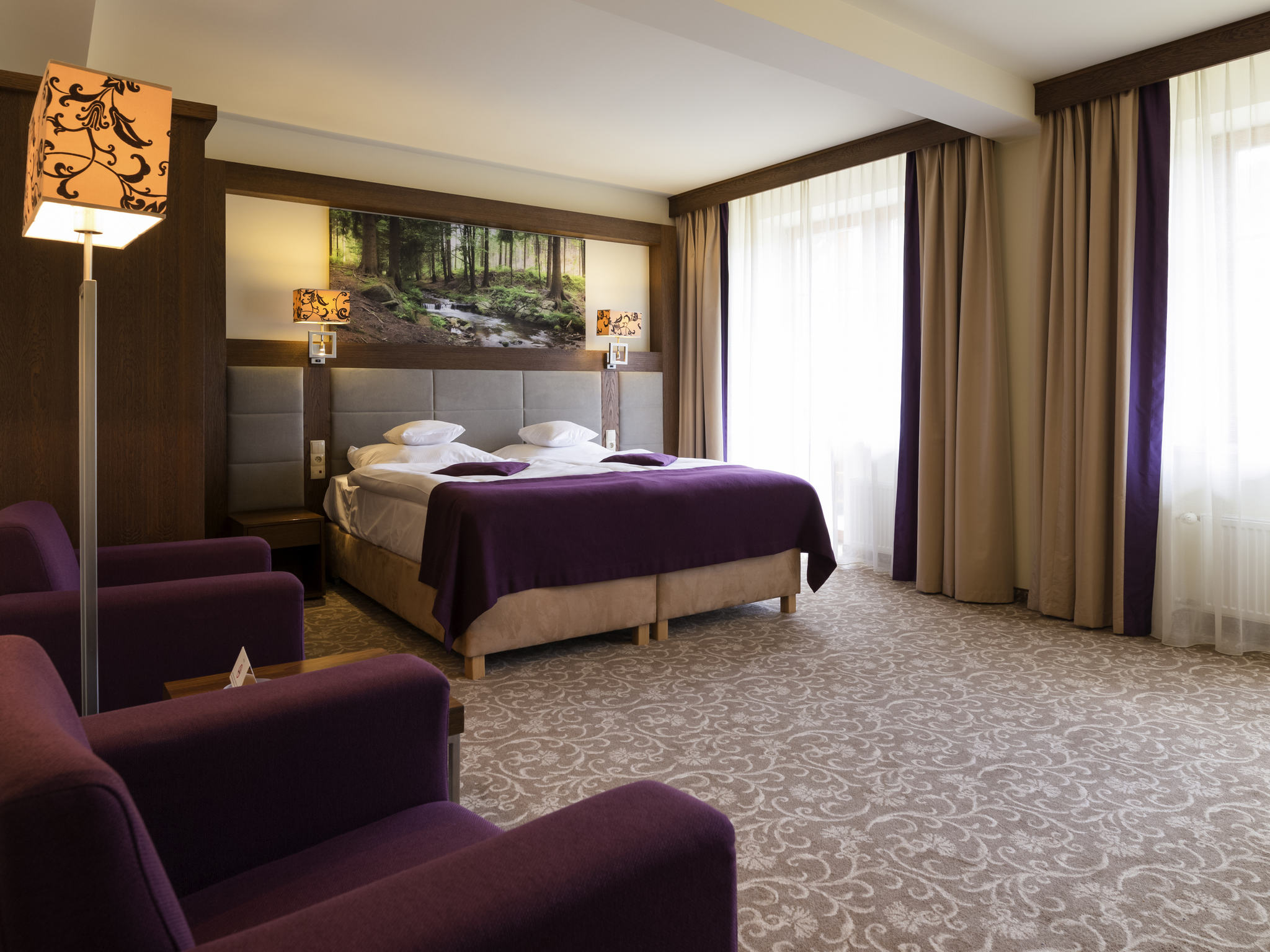 Exclusive 4* hotel in Krynica Zdroj - pearl of Polish spas. Mercure Krynica Zdrój Resort & Spa has comfortable and spacious rooms and state-of-art Spa with a swimming pool and unique saunas at extra fee. The location of the hotel is ideal, only 500m from the center of Krynica Zdroj. It is great holiday destination for couples and families with kids. Hotel is close to hiking, cycling trails and ski slopes.