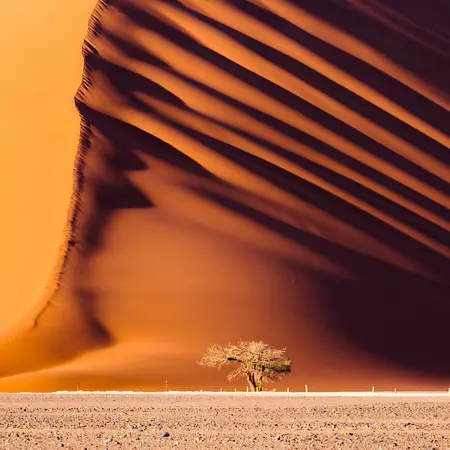 The morning demands an early start. A cup of coffee or tea before departure and our day's adventure beckons, as we want to experience the day awakening offering grand views onto the dunes en-route to Sossusvlei. Even a morning grouch will be delighted by what is to follow. Entering the Namib Naukluft National Park shortly after sunrise, the first rays of sunlight paint the mountains of sand into a colour variety of apricot, red and orange, contrasted against a crisp blue skyline, enrapturing our senses, and providing an opportunity to capture this awesome landscape on film. You will be captivated by the surreal Deadvlei surrounded by some of the highest dunes on earth and Sossusvlei, where the dry Tsauchab River ends abruptly amongst dunes. Take the opportunity to walk up one of these majestic dunes to admire the desert landscape beneath. The mostly dried white vleis compete in dramaturgy with the red dunes and deep blue skies, with gnarled and weathered camelthorn trees in Deadvlei providing the essential contrast. After going up onto the dunes you descend over rocks into the Sesriem Canyon. Anyone who did not know that the canyon was here would easily miss this 30-meter deep and one kilometre long canyon carved out by the Tsauchab River. Early settlers had to bind six (Ses) Lether straps (rieme) together to reach the water at the bottom of the canyon. Speaking of water - a welcoming keyword in this desert heat! A welcoming and refreshing pool or a cooling drink filled to the rim with ice cubes awaits us back at the lodge. Back at the lodge, we unwind and recapture the day's experiences.
