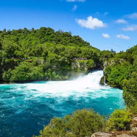 Follow the Thermal Explorer Highway through the glorious landscapes of the North Island. Gaze out over the thunderous Huka Falls and the tranquil setting of Lake Taupo, before crossing the volcanic plateau of Tongariro National Park on your way to the nation's capital, Wellington.