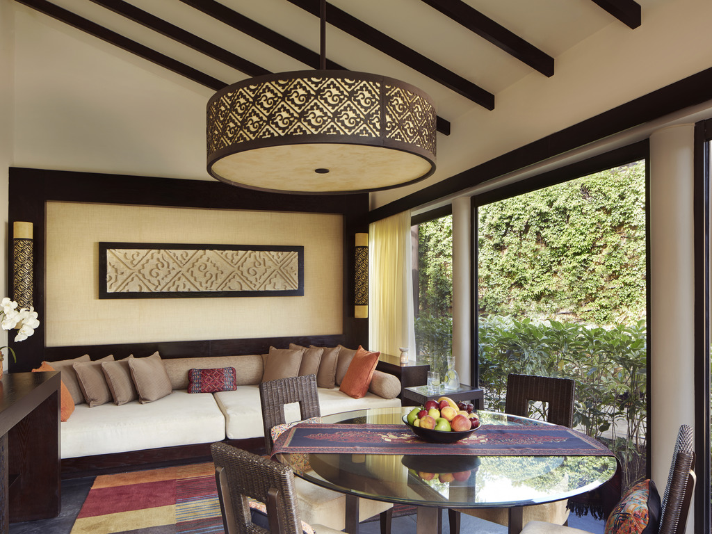 A peaceful and intimate retreat This idyllic space is the perfect place to relax and enjoy time away together from the hectic world. Each villa comes with separate living and study pavilions and is elegantly furnished with Maya-inspired designs.