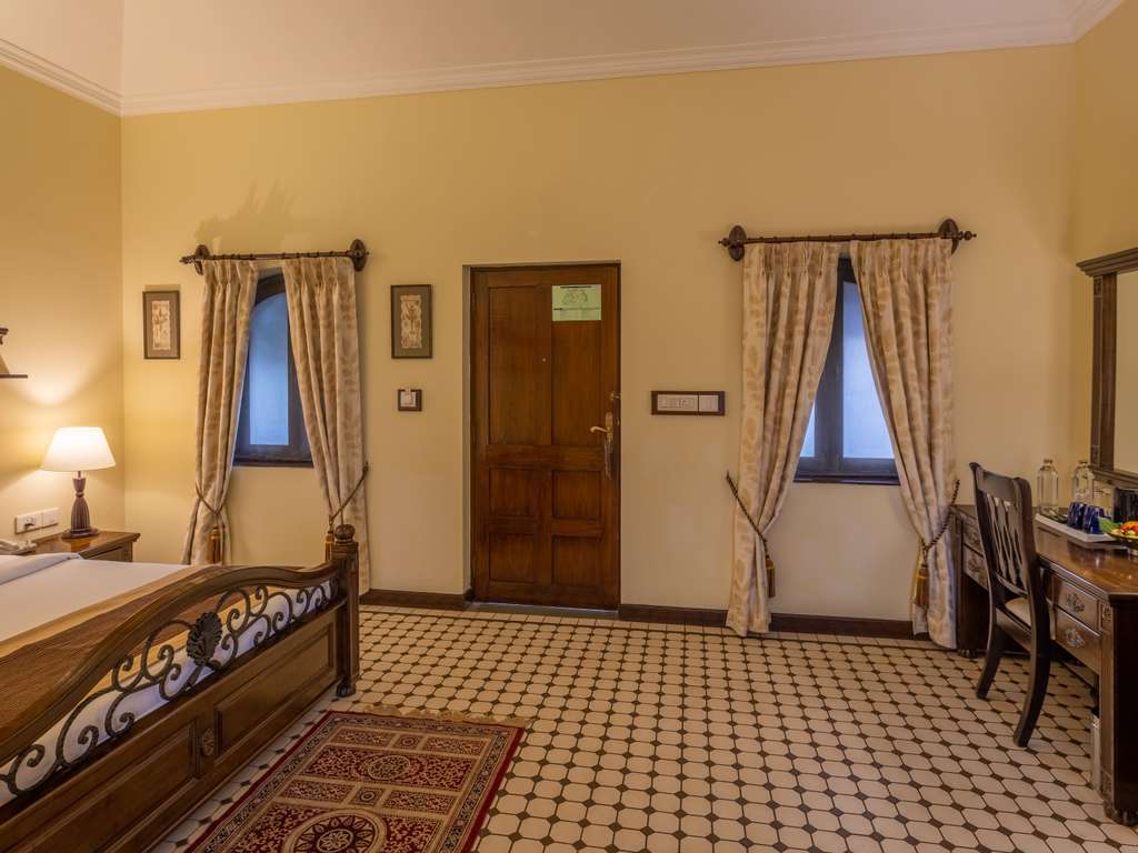 Tranquil Goan Portuguese styled villa rooms, from the glorious views of the partial river & garden view to a lazy siesta on the verandah with a spacious bath area. The 37 sqmtr double bed room accommodates two adults.