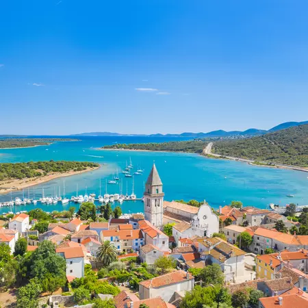 Today's Split is the handiwork of seventeen centuries of men and women building and remodeling, adding, tearing down and touching up, so that 18th century houses intersect with ancient Roman walls and fourth century chambers now house the twentieth century apartments. At the core of this sprawling cityscape is the palace the emperor Diocletian built for his golden years at the turn of the fourth century. Today's lunch will be the traditional Dalmatian dish prepared for us at the Tragos restaurant in Trogir. The town of Trogir, a UNESCO site, has a fascinating 2300 years of continuous urban tradition. Its rich culture was created under the influence of old Greeks, Romans, and Venetians. With the high concentration of palaces, churches, and towers, as well as a fortresses on a small island, Trogir is sometimes referred to as the floating museum town.